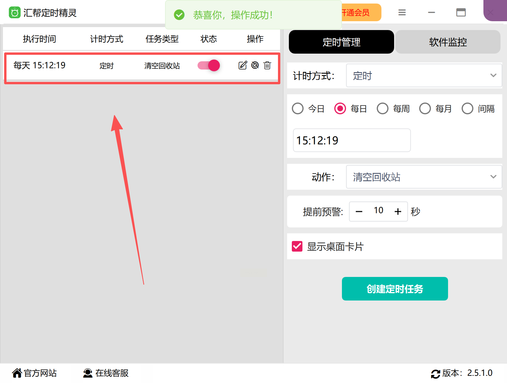 4. 点击“完成”生成定时任务,可在“任务列表”中查看已创建的回收站清理计划。
