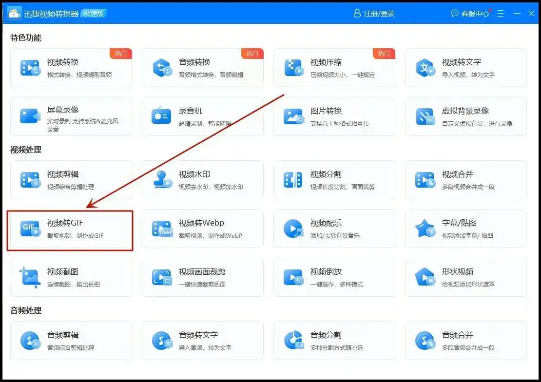 1. 进入视频转GIF功能:打开软件后,在功能列表中选择“视频转GIF”,界面清晰显示支持的格式,包括WebM。