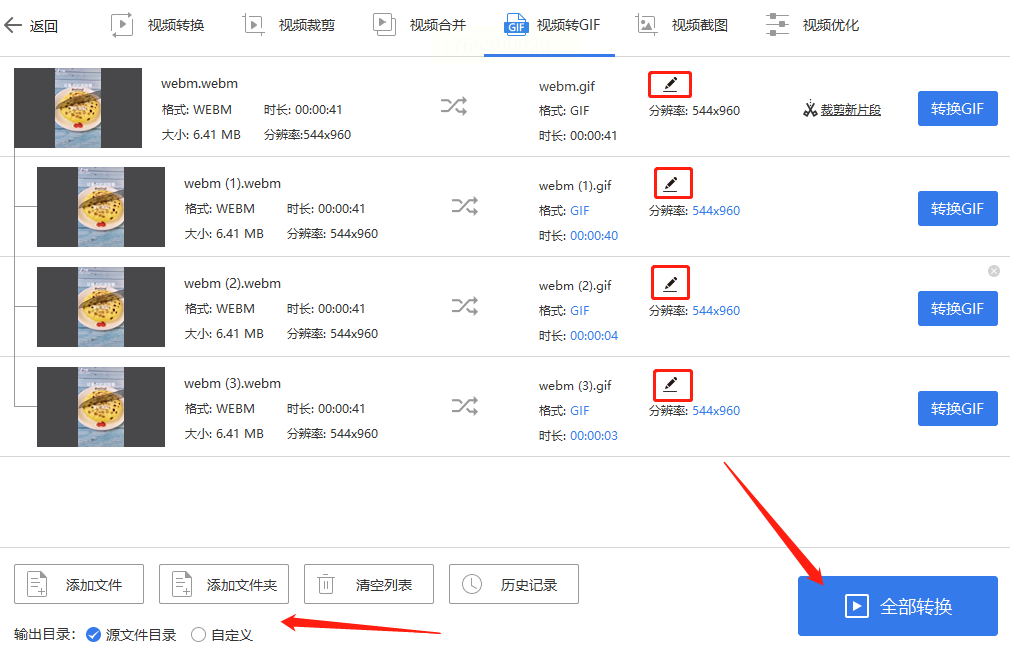 3. 一键转换:文件上传后,直接点击“全部转换”(若为单文件,按钮显示“转换”),软件会自动处理并输出GIF。