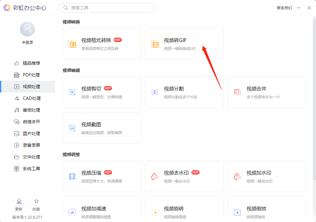 1. 找到视频转GIF入口:打开软件后,在左侧功能栏选择“视频处理”,再点击“视频转GIF”。
