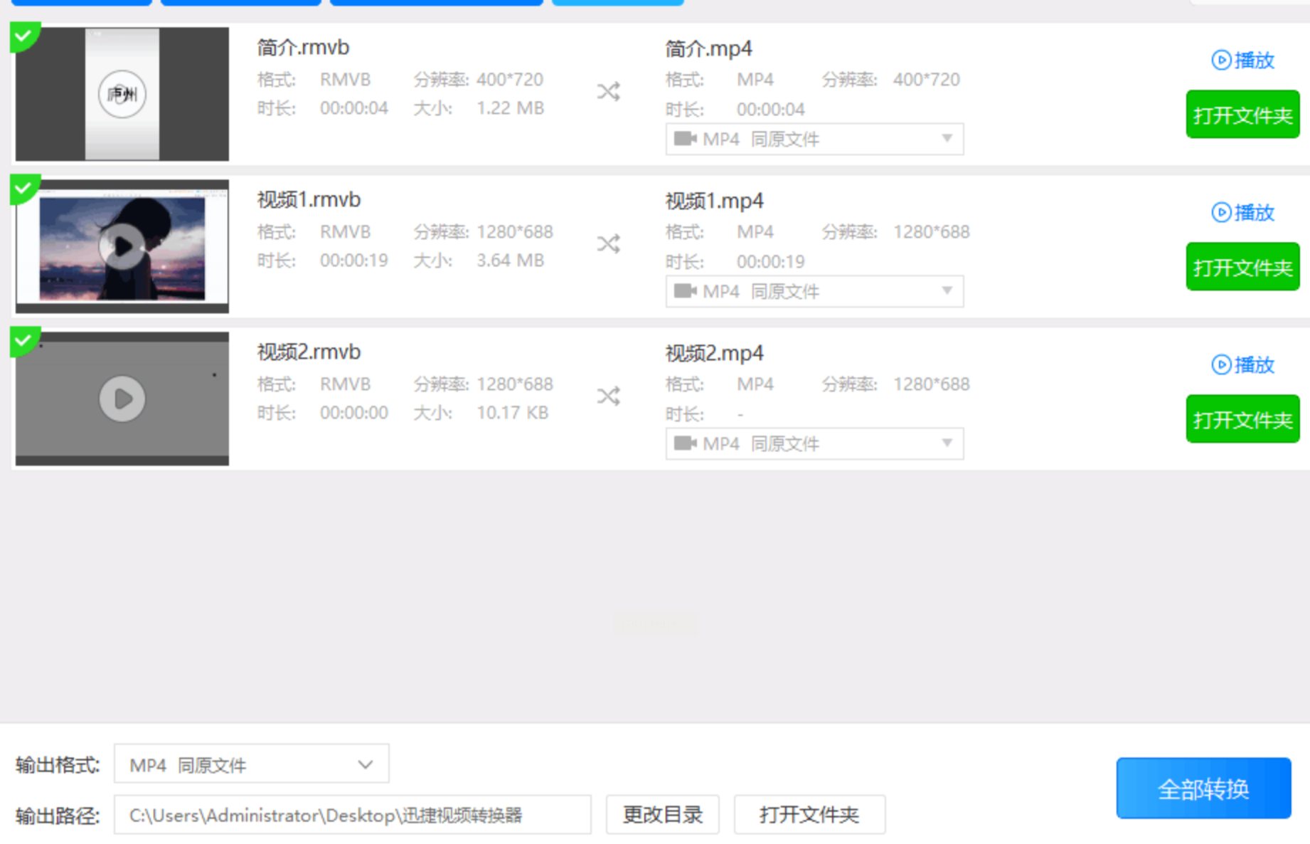 5. 转换完成后,可通过「打开文件夹」直接查看输出文件,验证画质与完整性