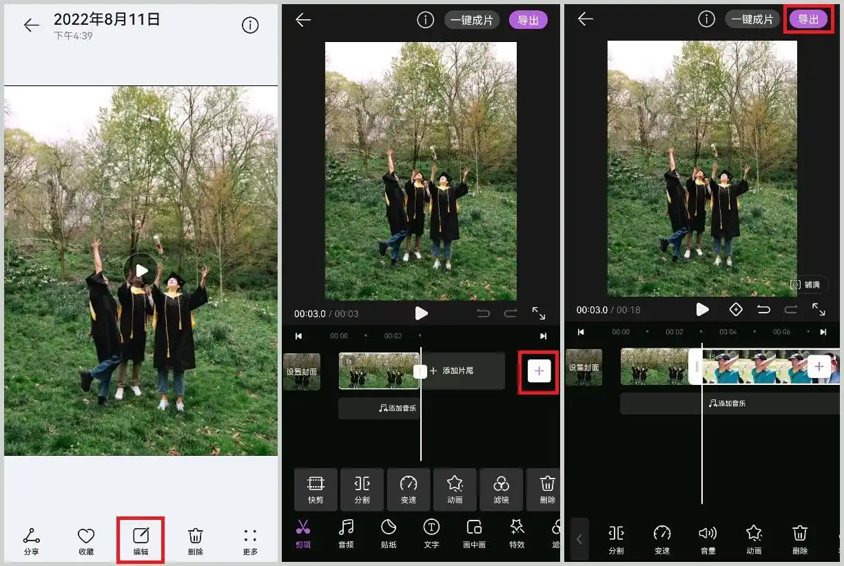 视频添加好后,你会进入一个编辑界面。在这个剪辑面板里,如果你突然想起来漏了一个视频,别慌。看看屏幕边缘,有没有“添加”按钮,还能继续把新视频补进来,非常灵活。