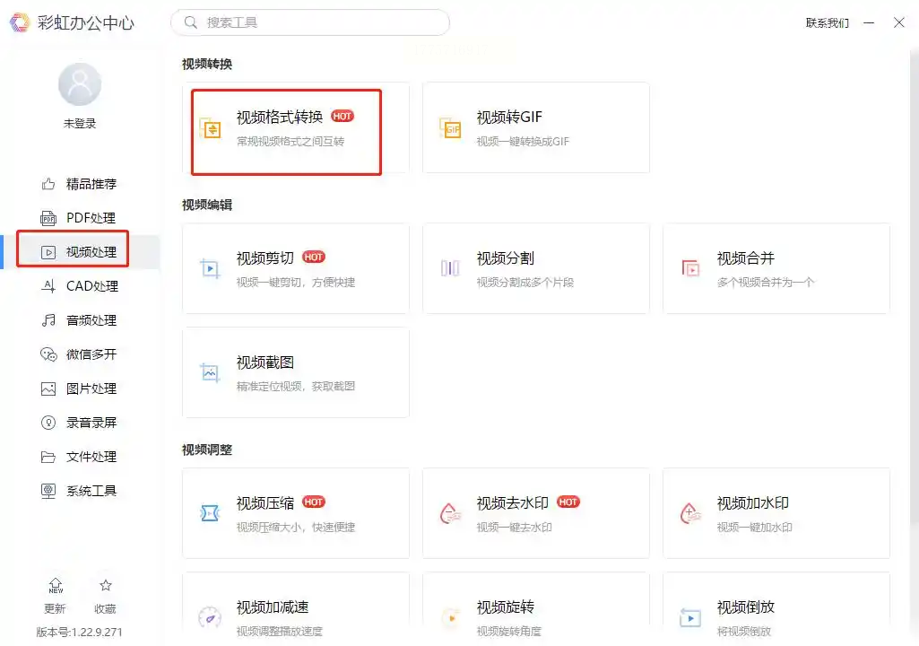 借助彩虹办公中心的视频处理功能,我们可以轻松实现格式转换,不管是简单转换还是基础参数调整,搞定mp4转rmvb都很省心,步骤如下: