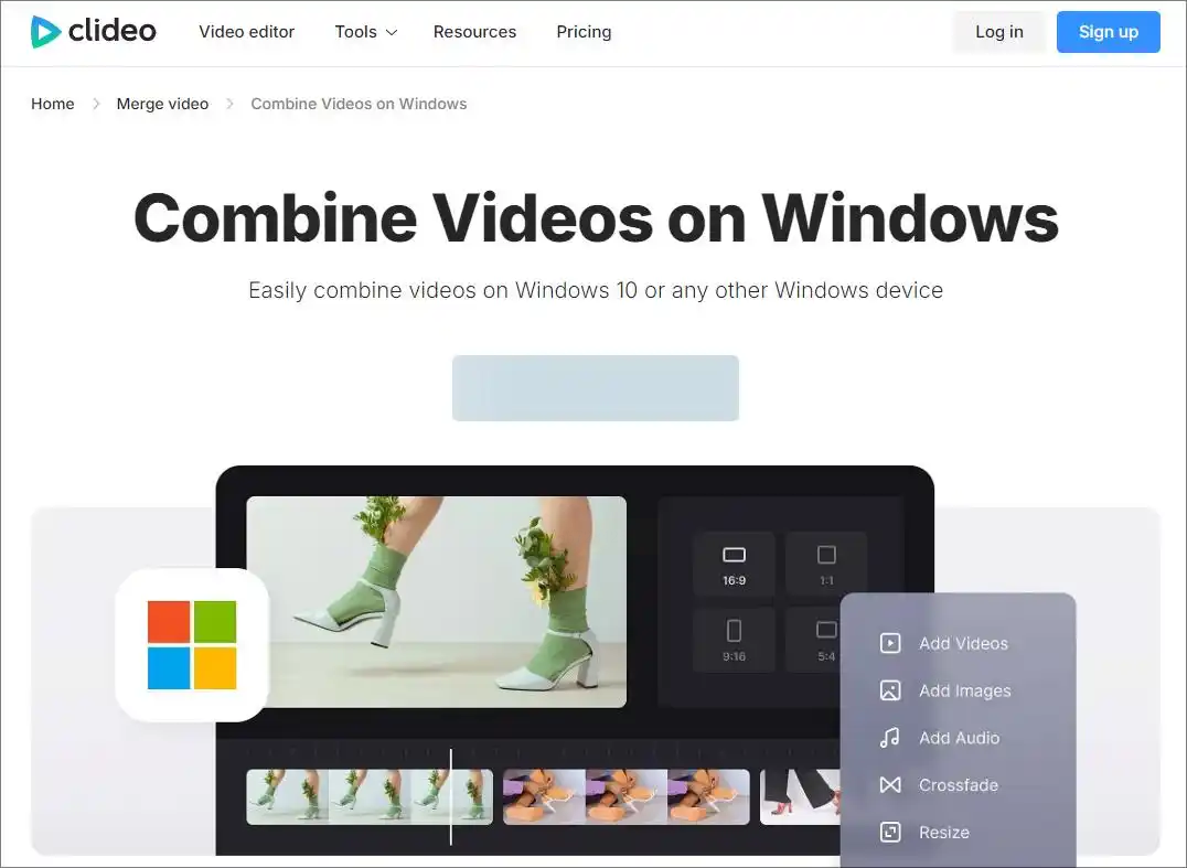 1. 打开网页:在浏览器中输入网址(官网),进入Clideo Video Joiner界面。
