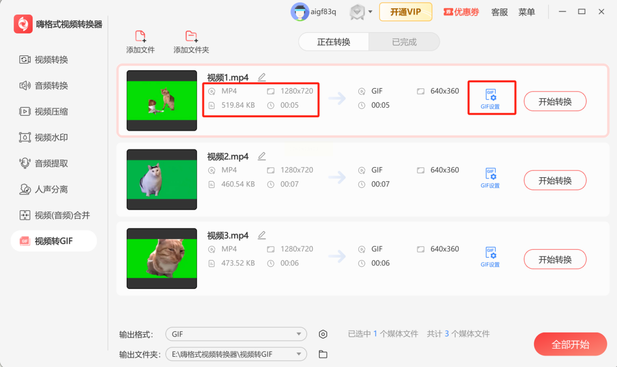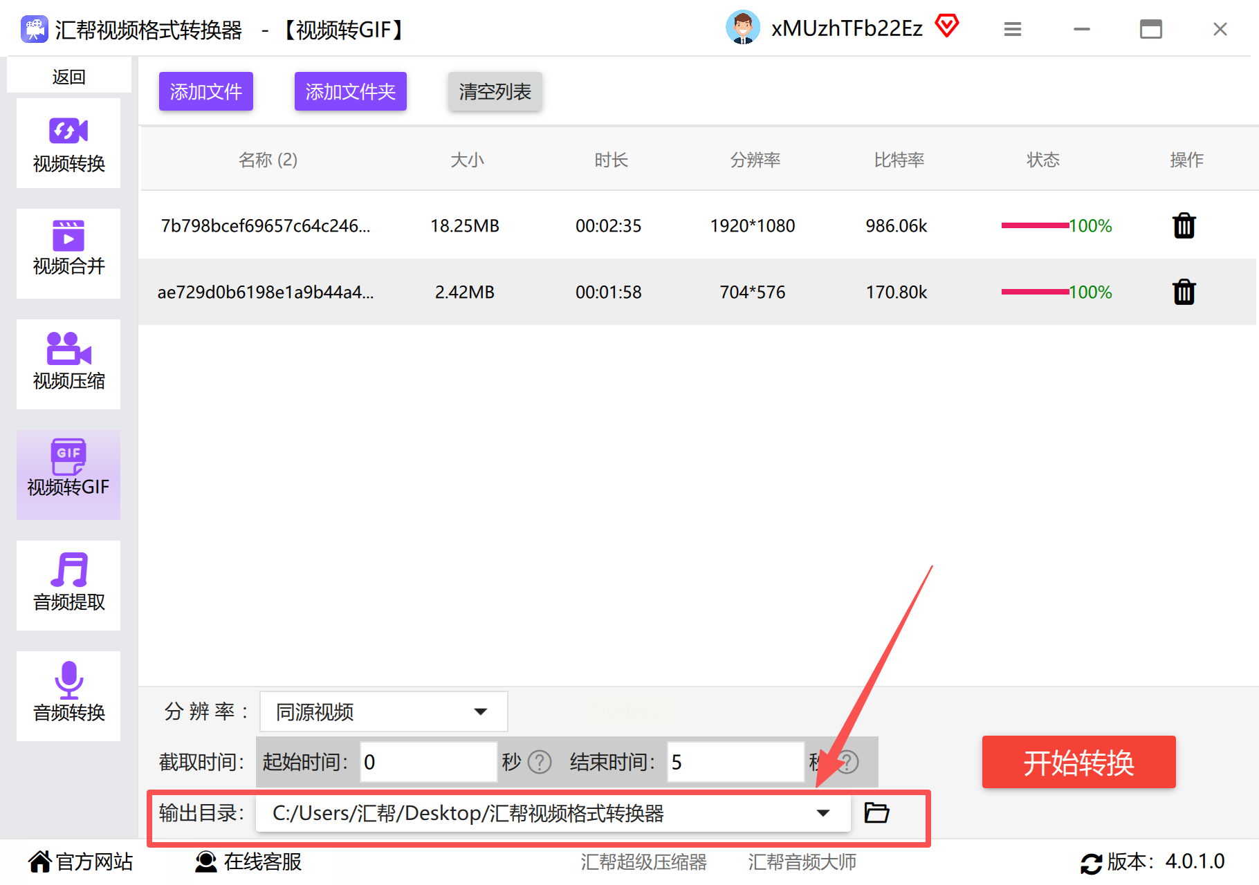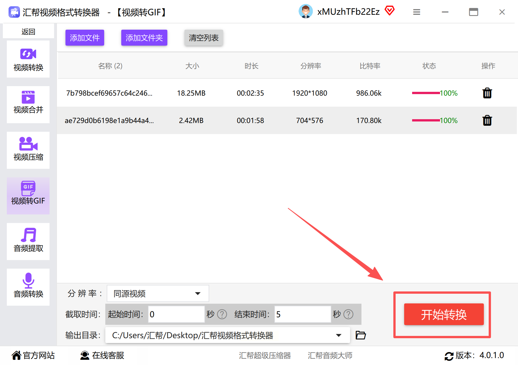 步骤三:启动转换后稍作等待,即可在完成列表中查看并导出GIF文件。