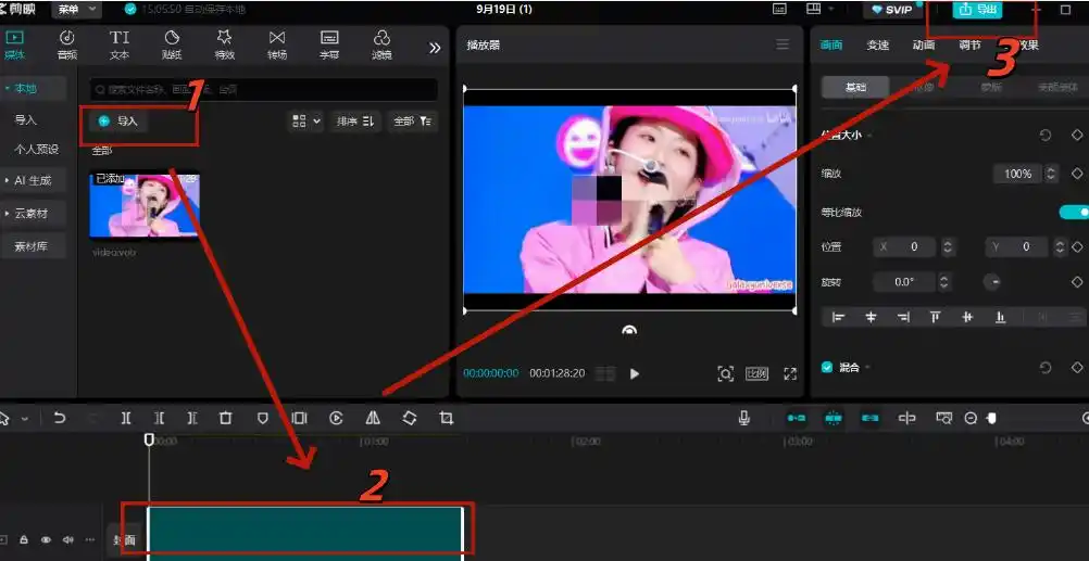 在软件界面里,找到导入素材的区域,把你的VOB视频文件导进来。然后,把这个视频拖到下方的时间轴轨道上。