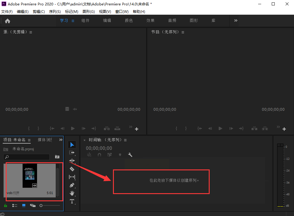 打开Premiere Pro,新建或打开一个项目。在项目面板中导入你的VOB文件,然后把它拖到右侧的时间轴面板里。