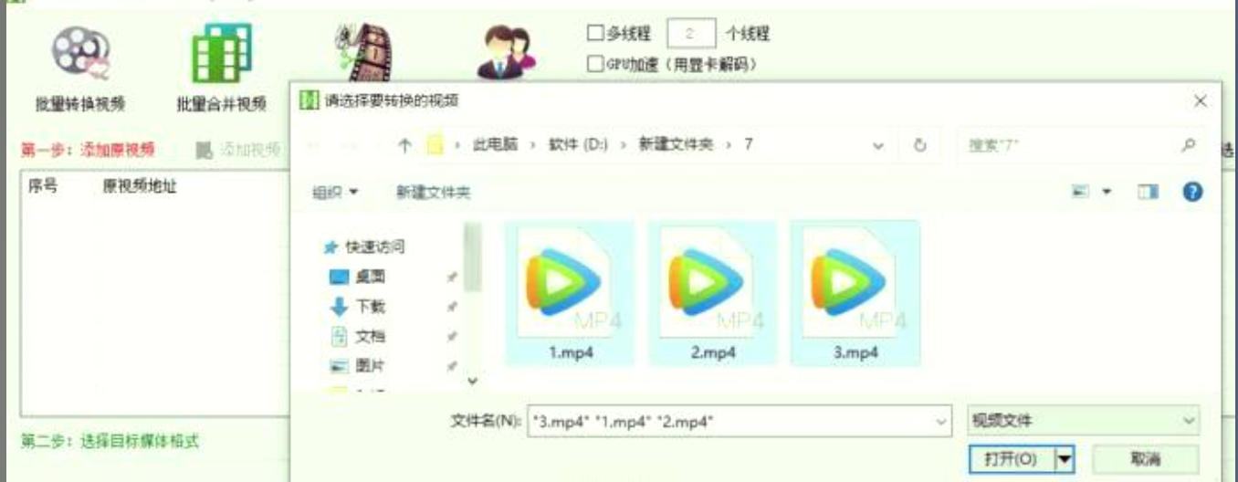 点击“添加文件”按钮,选中多个MP4文件(按住Ctrl键多选),软件会自动读取文件信息并显示在列表中。
