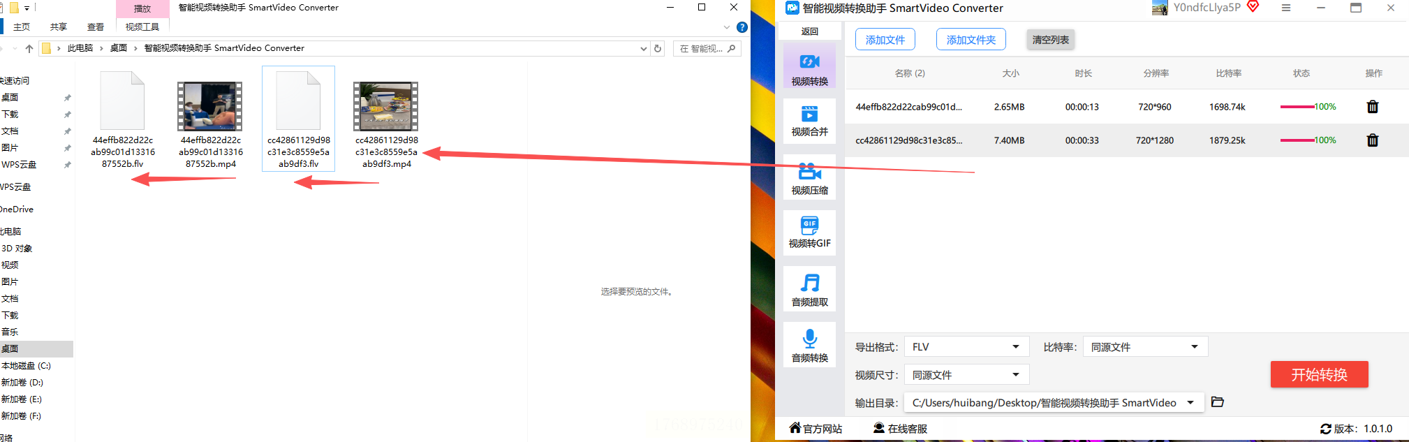 步骤六:点击“开始转换”按钮,软件就会开始处理你的视频文件。转换完成后,你会看到原文件依然保留,同时生成一个新的FLV格式文件。