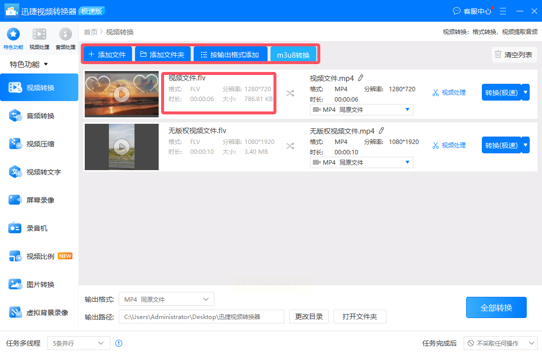 对于追求多功能体验的用户,迅捷视频转换器不仅能完成格式转换,还提供视频剪辑、音频提取等附加功能。适合需要处理复杂视频任务的创作者或专业用户。