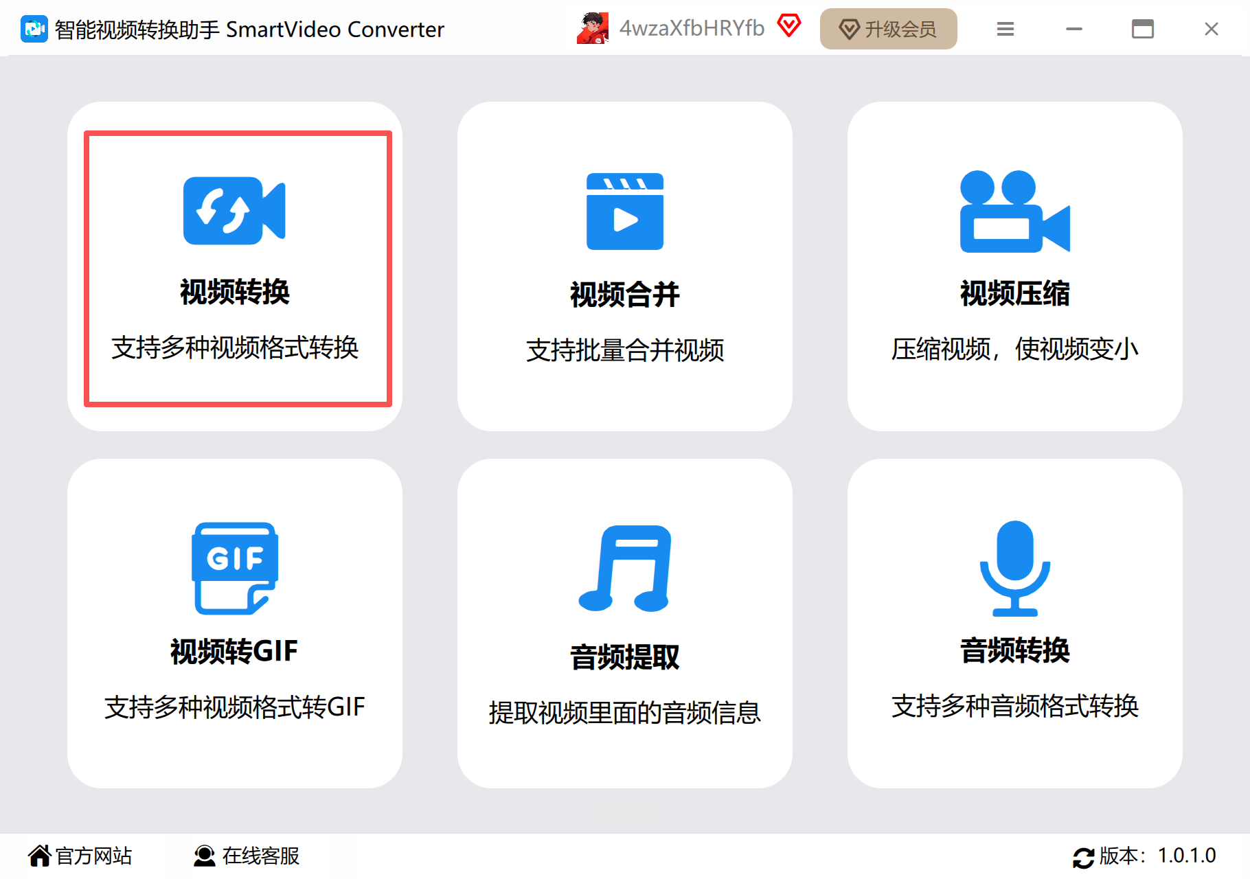 启动软件后,在主界面找到"视频转换"模块,点击进入后会显示格式转换、视频编辑等功能选项。该工具支持几乎所有常见视频格式,包括AVI、MKV、MOV等。