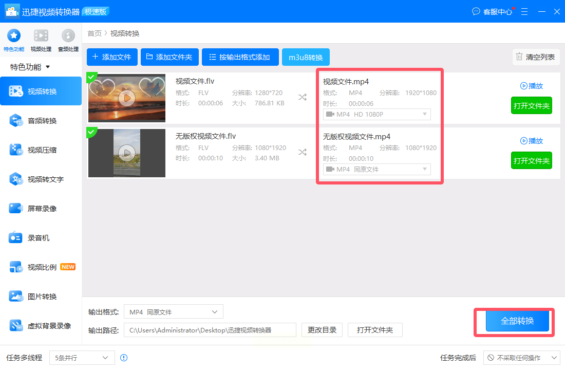 - 高保真转换技术:采用帧内编码优化算法,转换后视频色彩、细节损失率低于1%