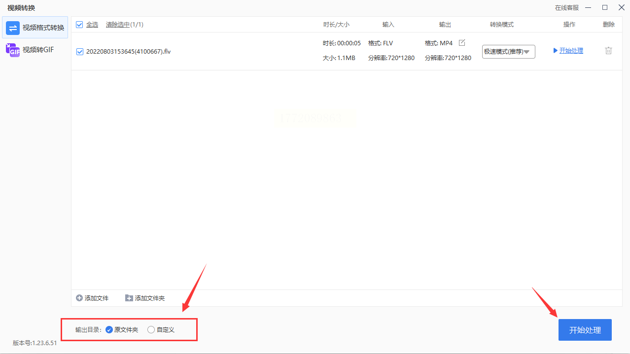 2. 勾选需转换的FLV文件,支持多选或全选
