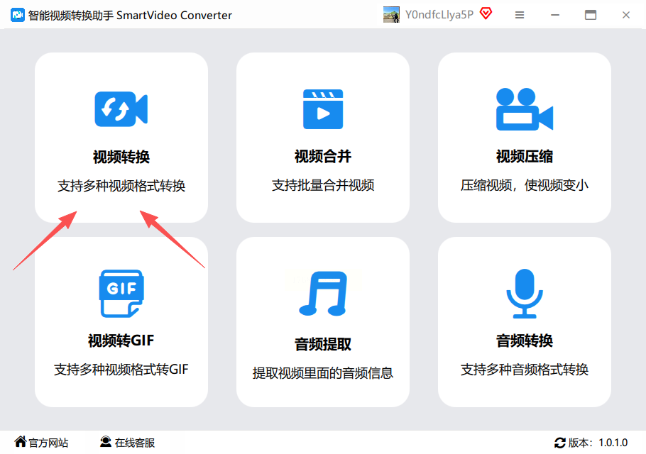 步骤一:首先,你得在电脑上打开智能视频转换助手这个软件。启动之后,在主界面里找到“视频转换”这个功能选项,点击它。
