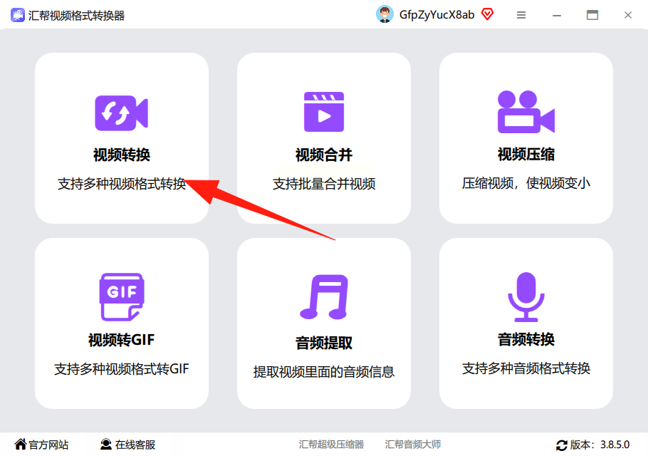 步骤一:启动《汇帮视频格式转换器》。软件界面通常很直观,你一眼就能看到“视频转换”这个核心功能,点击进入。