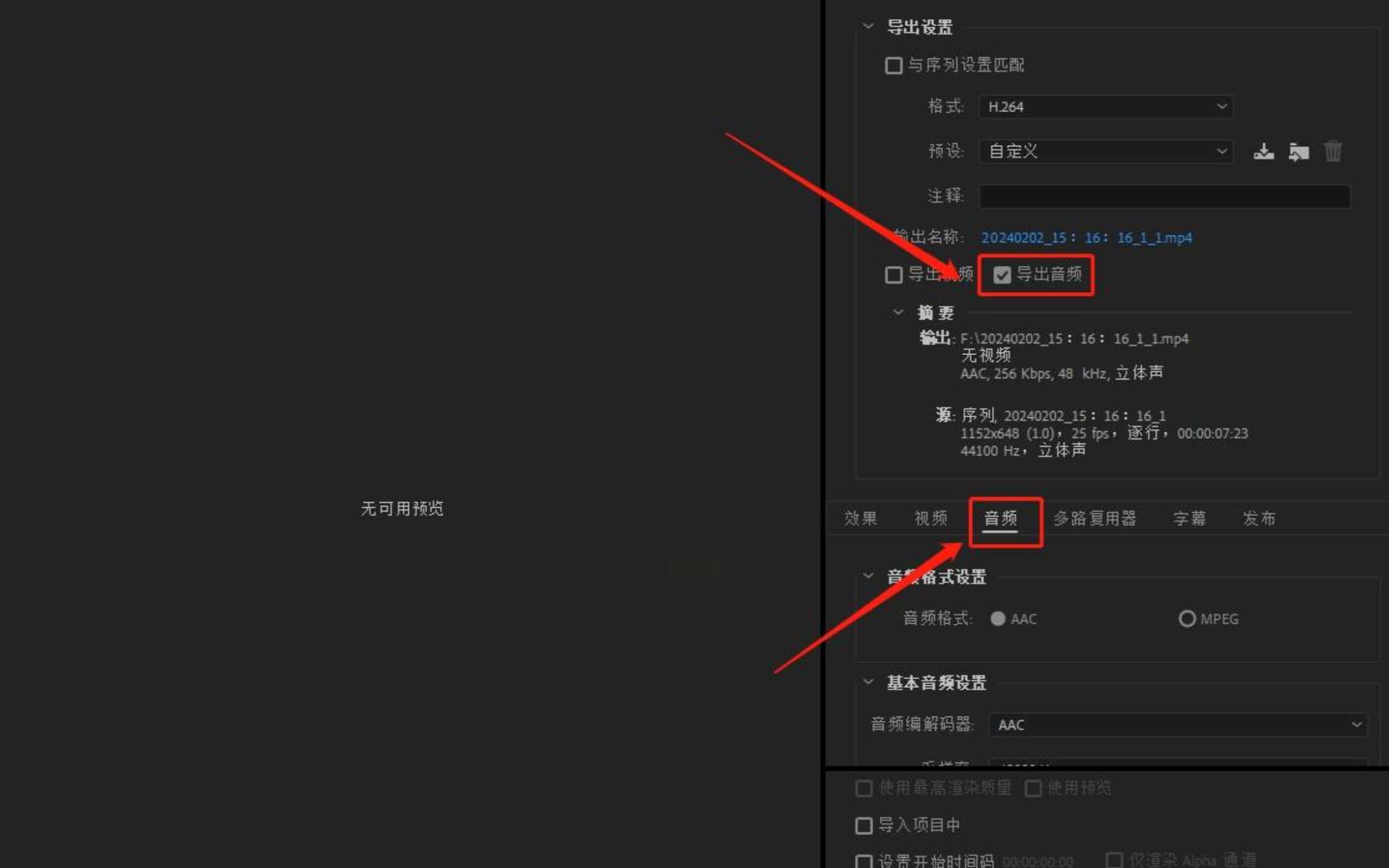 4. 在导出设置中,将"格式"设为MP3,"预设"选择"匹配源-高比特率"。