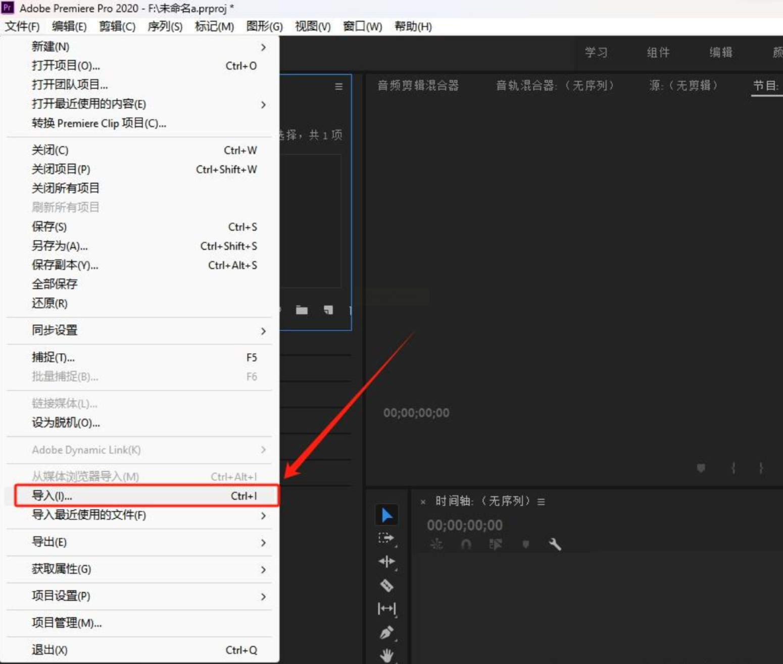 1. 新建项目并命名,点击"文件"→"导入"选择视频素材。