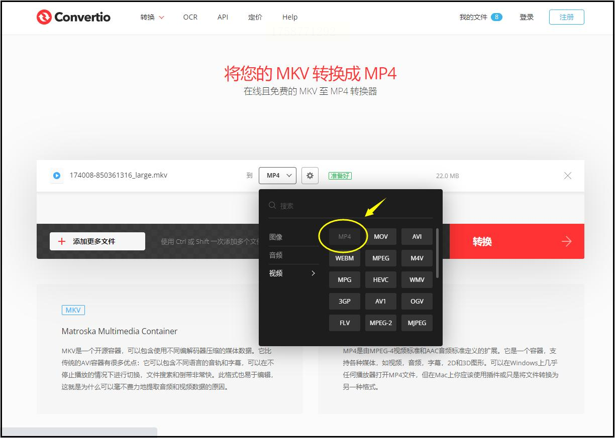 2. 上传文件:点"选择文件",把MKV拖进去,一次只能传一个,要批量的话得分批来。