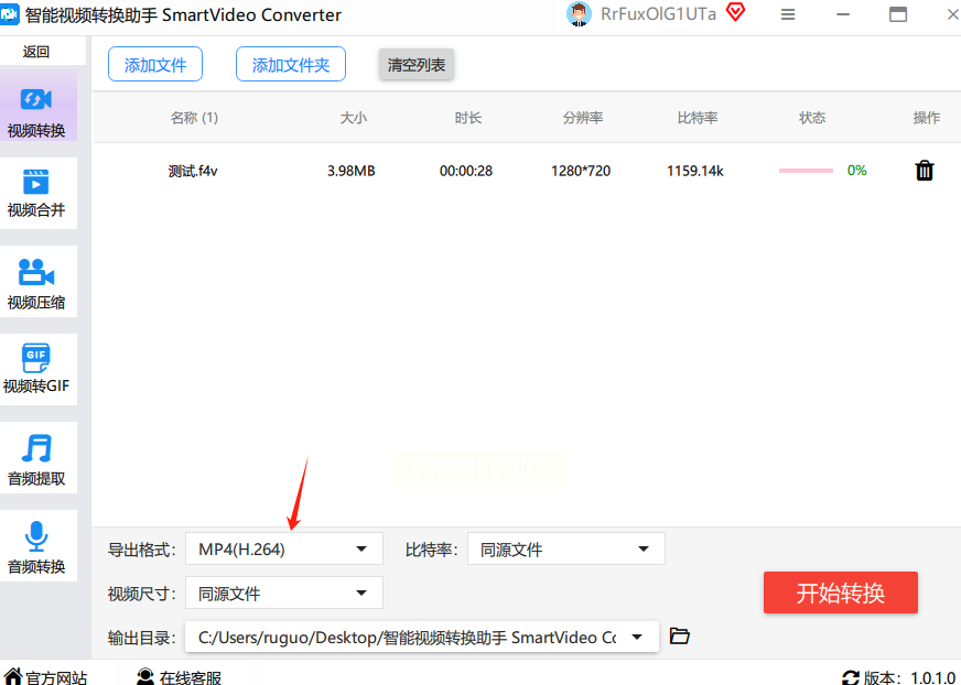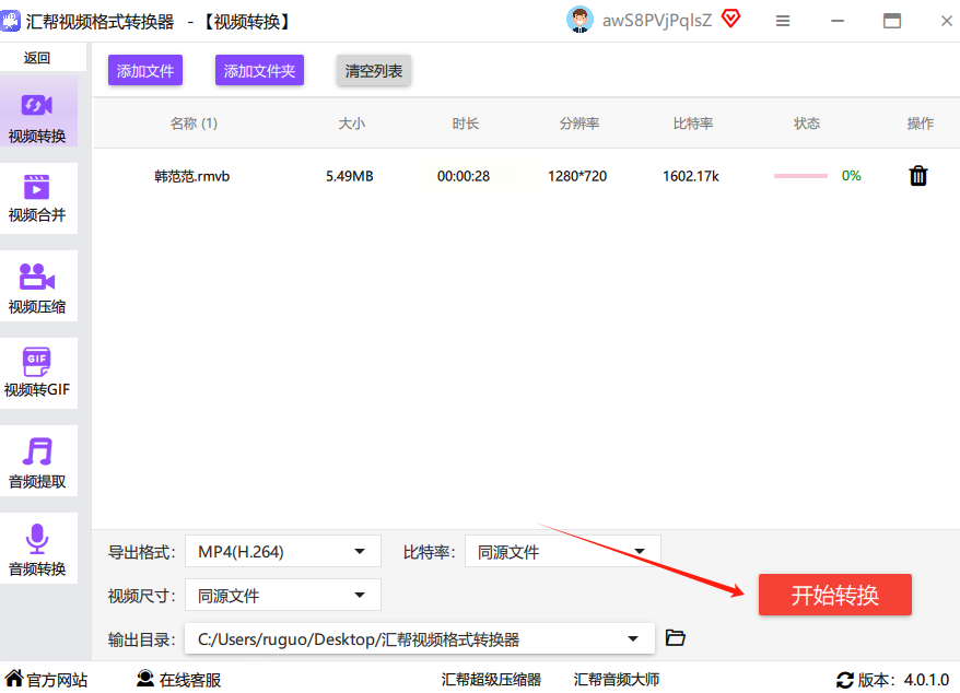 4. 最下面有个“开始转换”,点一下就开始了。转换的时候进度条会显示,一般几分钟一个视频,等所有视频都显示“完成”就可以了。
