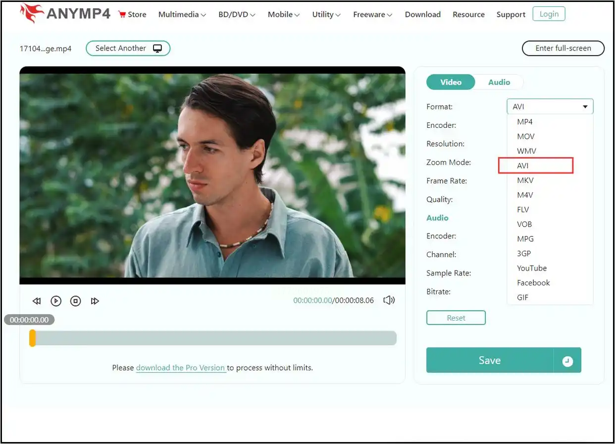- 支持多种格式,不光MP4转AVI,还能转GIF、音频啥的