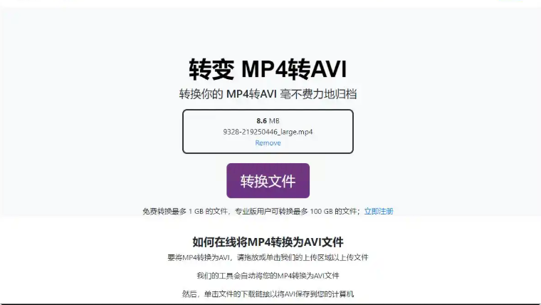 3. 上传后选输出格式为AVI,点“转换”
