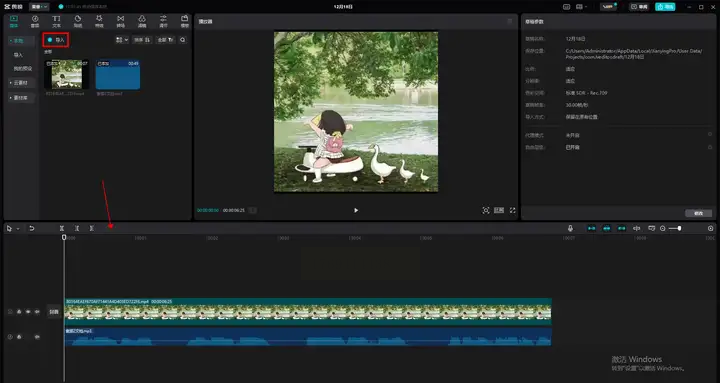 1. 打开剪映软件,点击「开始创作」导入需要合并的视频和音频。