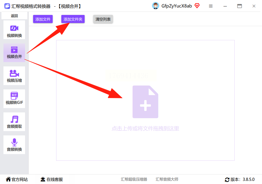 3. 批量上传视频:直接把需要合并的视频文件拖进界面,支持同时上传多个文件,大小不限,还能自由调整排列顺序。注意视频格式最好保持一致,这样合并效果更稳定。