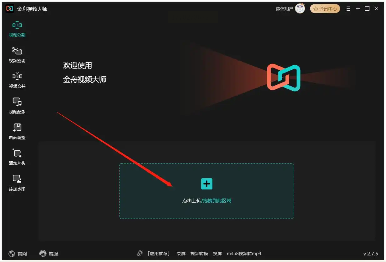 打开软件后,在主界面的"功能导航区"点击"视频转换"选项卡,界面将显示格式转换核心功能区,支持拖拽文件直接导入。