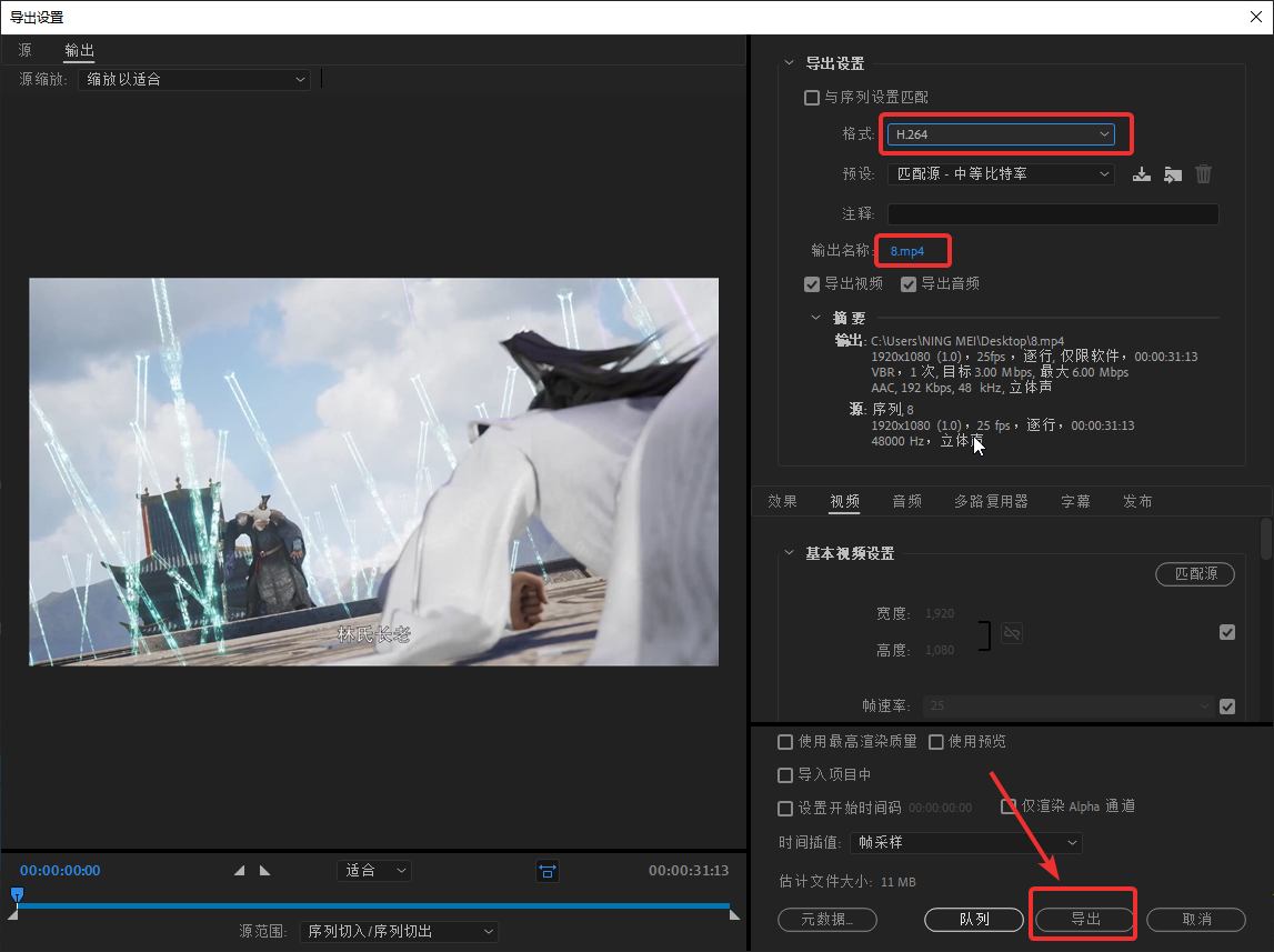 5. 点击【Export】开始渲染转换,完成后就能得到高质量的MP4文件了。