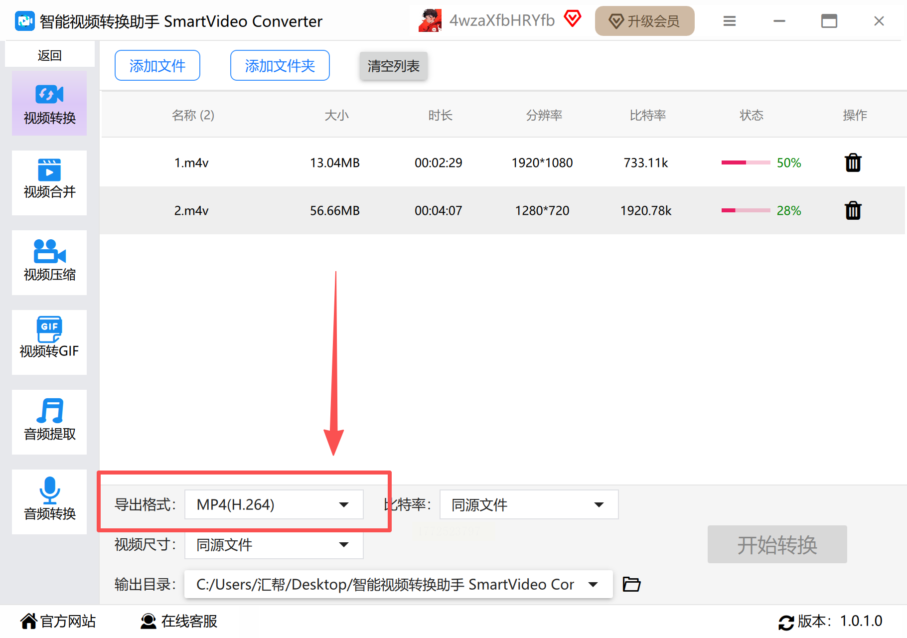 5. 点击【开始转换】,软件会显示转换进度,完成后可以在目标文件夹里找到新的MP4文件。