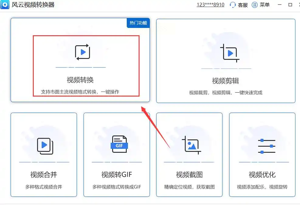 1. 选择转换功能:打开软件后,首页会显示“视频转换”“音频提取”等模块,直接点击“视频转换”进入主界面。