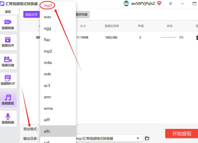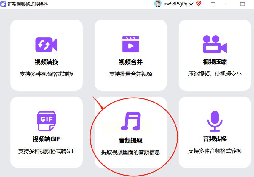 1. 打开软件选功能:先点开"汇帮视频格式转换器",界面超简洁,一眼就能看到"音频提取"这个按钮,点它!(就像打开奶茶店点单界面,先选你要的品类~)