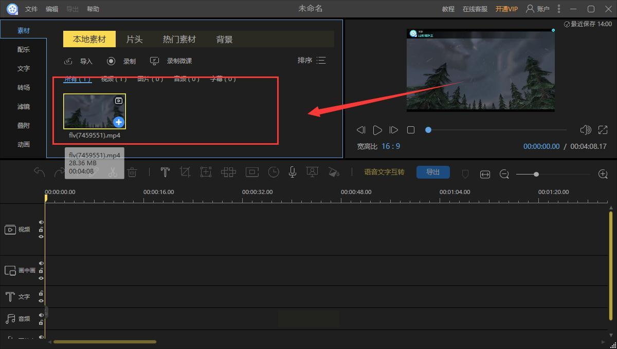2. 导入视频素材:把要提取音频的视频拖进素材库,或者点"导入"按钮从电脑里找,拖进去后视频会变成小缩略图躺在素材栏里~