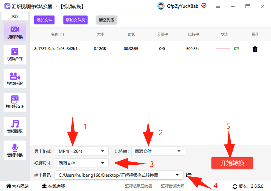 所有参数设置完毕后,点击界面右下角的“开始转换”按钮。软件会自动处理视频格式转换,进度条会实时显示转换状态,当右侧进度显示100%时,转换完成,你就可以在指定目录中找到转换好的MP4文件了。