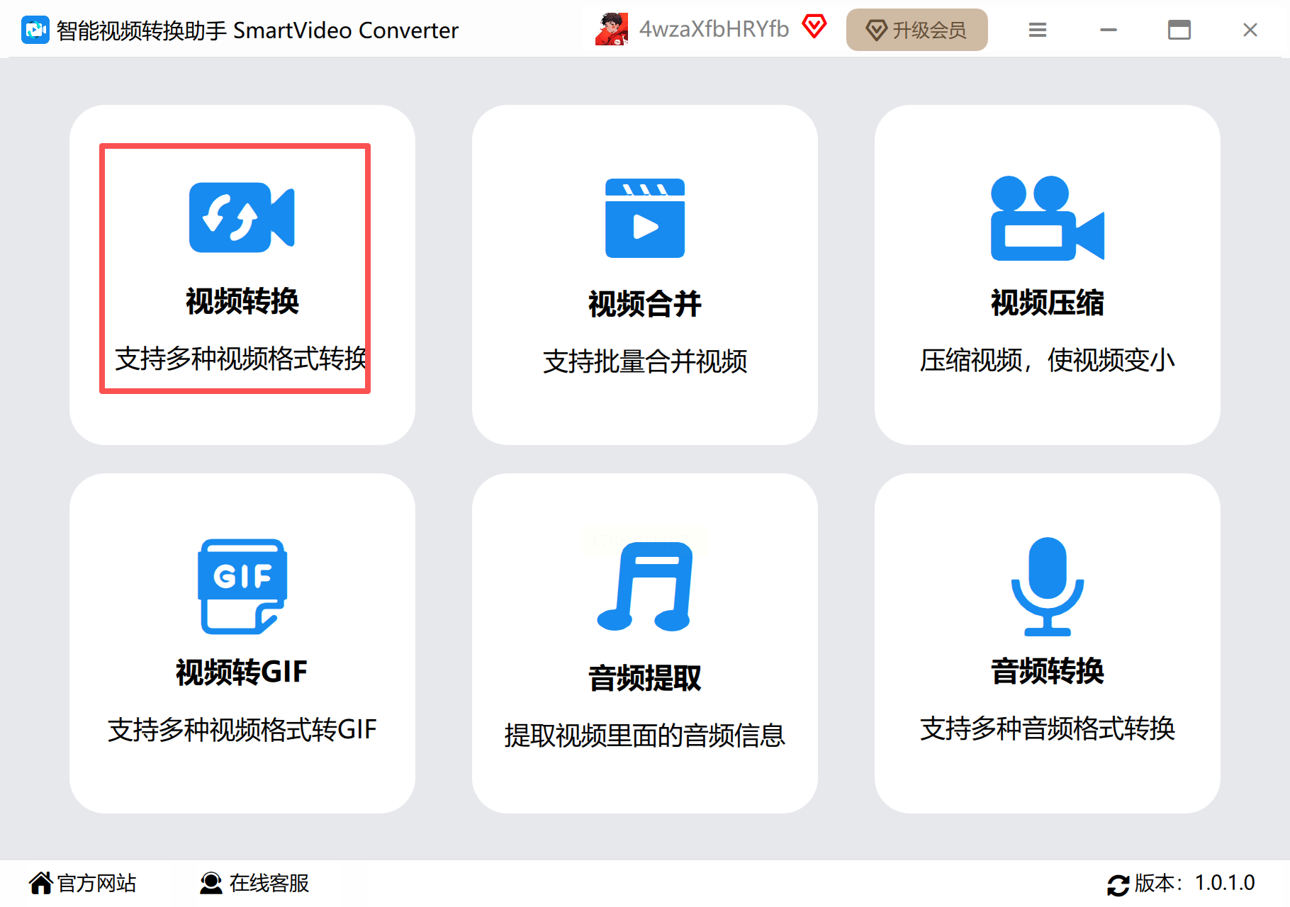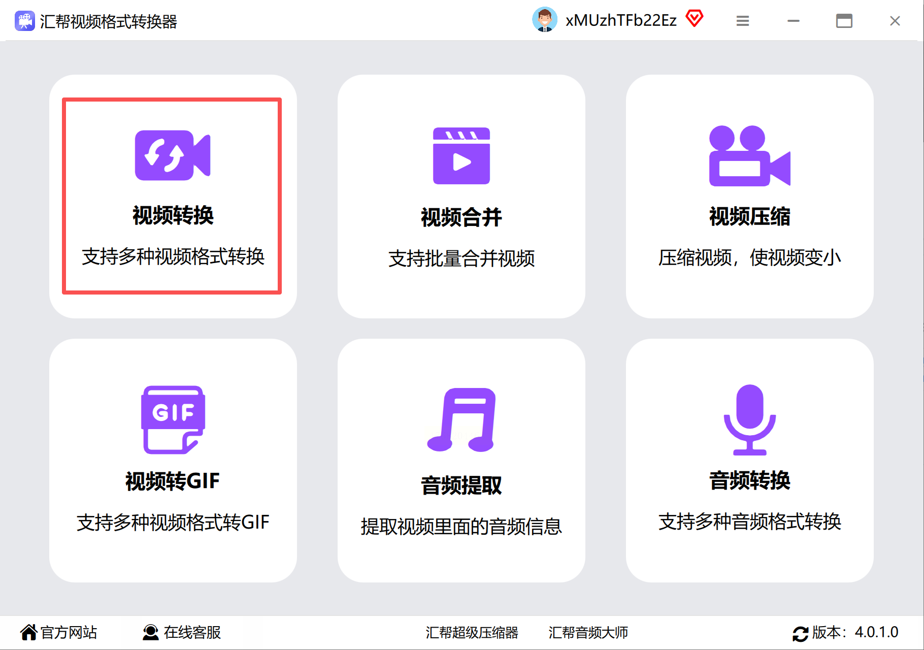 1. 启动软件后,在首页选择"视频格式转换"(与其他软件布局类似)