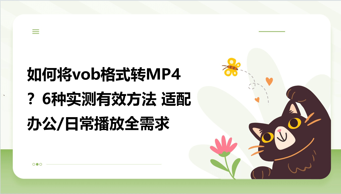 在数字内容日益丰富的今天,很多用户会遇到DVD视频文件(.vob格式)无法在手机、平板等设备上播放的问题。这种加密的DVD容器格式虽然兼容DVD播放器,但在流媒体平台、社交软件等场景中兼容性极差。那么如何高效将vob格式转换为大众通用的MP4格式?本文将从普通用户需求出发,分析不同场景下的转换需求,提供6种真实可用的转换方案,并附上详细操作步骤。