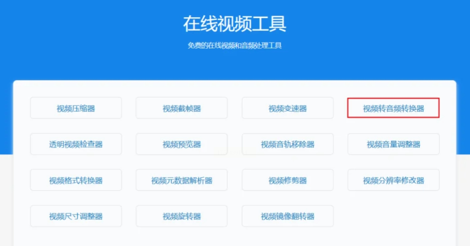 2. 选择转换功能:在首页找到"视频转音频转换器"选项并点击进入。注意有些在线工具会有广告,要认准正确的功能按钮。