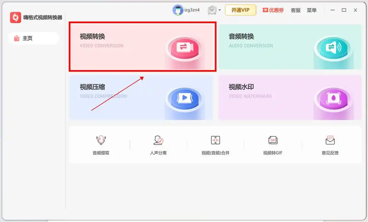 启动软件,在主界面找到并点击“视频转换”功能图标。