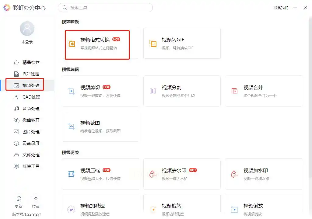 - 步骤一:打开软件,点击左侧菜单的"视频处理",选择"视频格式转换"