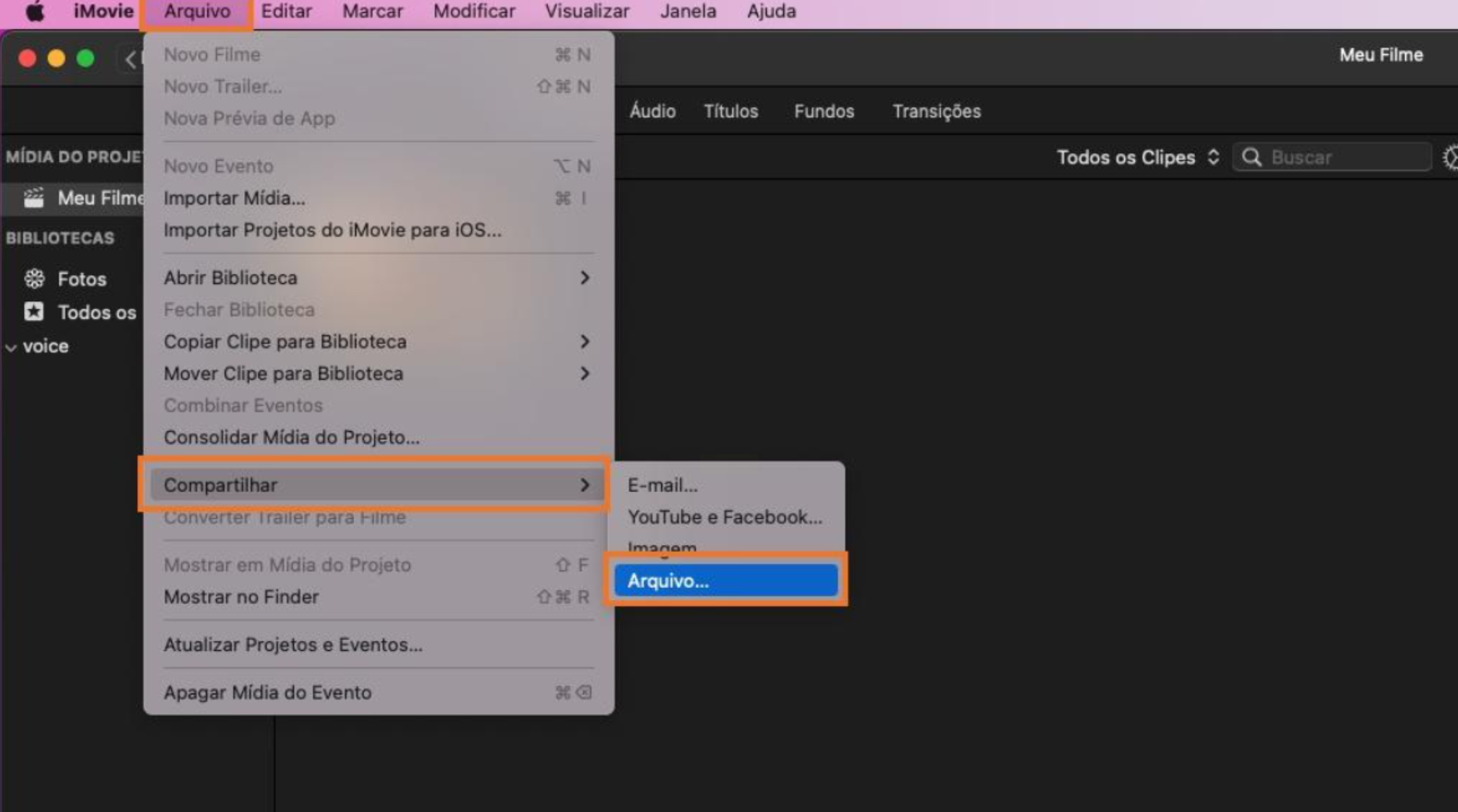 1. 打开iMovie,导入MOV视频后点击“文件”→“共享”→“文件”;