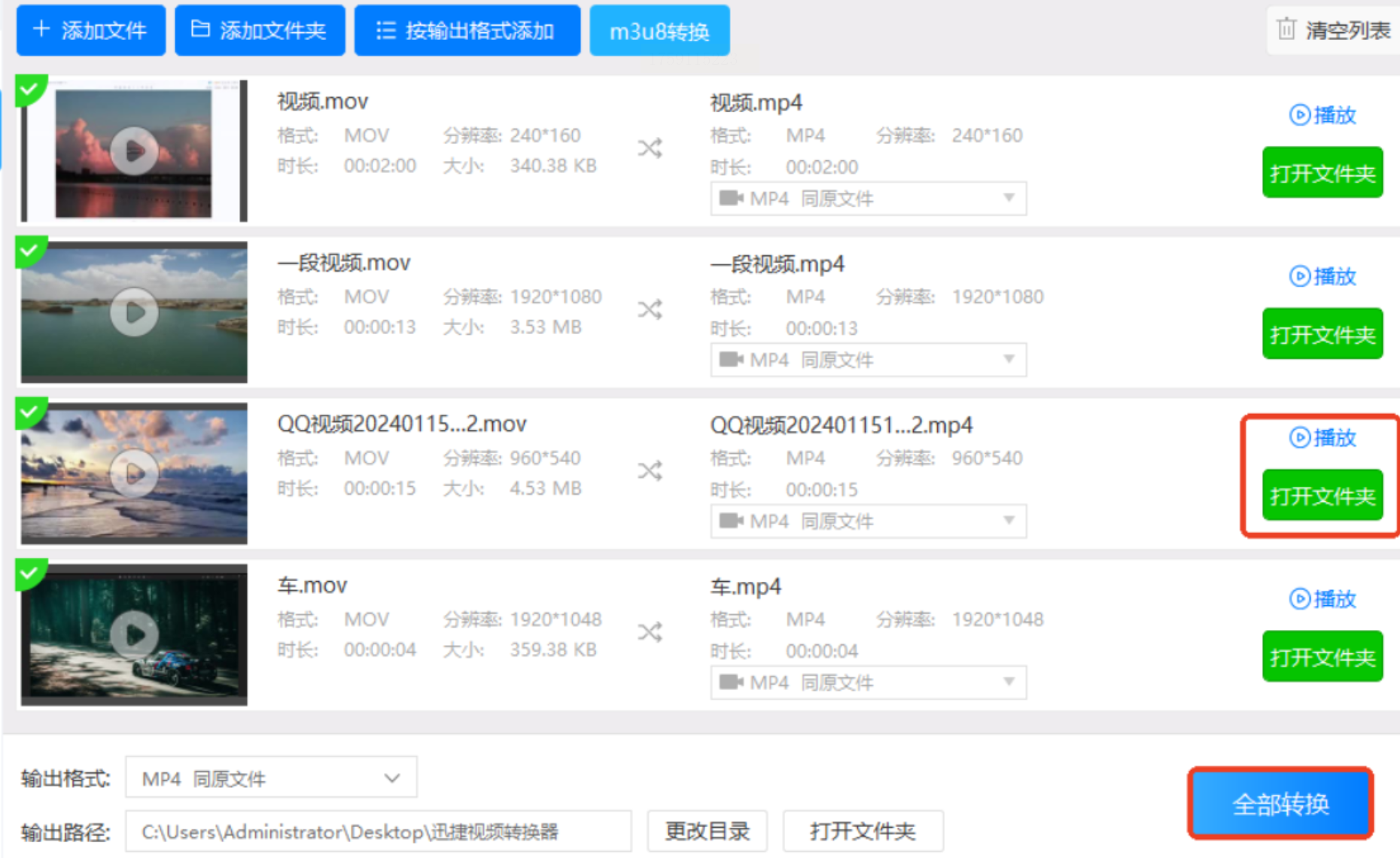 可直接点击“打开文件”查看转换后的MP4视频,或在输出目录中找到目标文件。