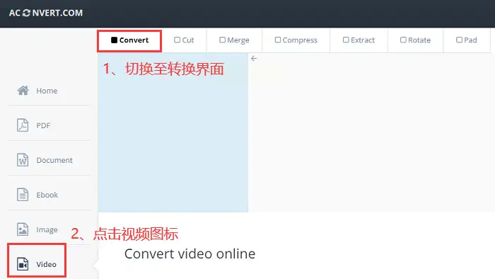 - 操作步骤:打开网站→点击“Convert”→选择“Video”→上传文件→选择输出格式→转换。