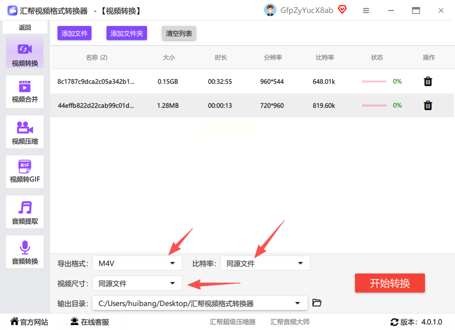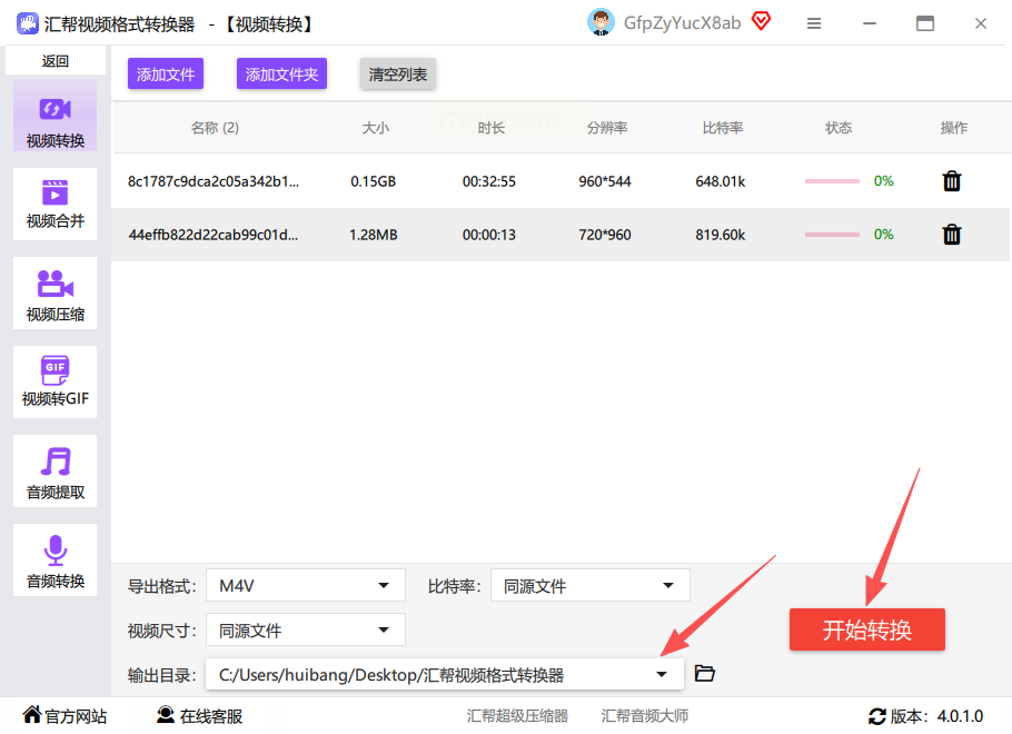 首先要介绍的是汇帮视频格式转换器,它支持多种视频格式互转,操作界面简洁明了,适合大多数用户使用。