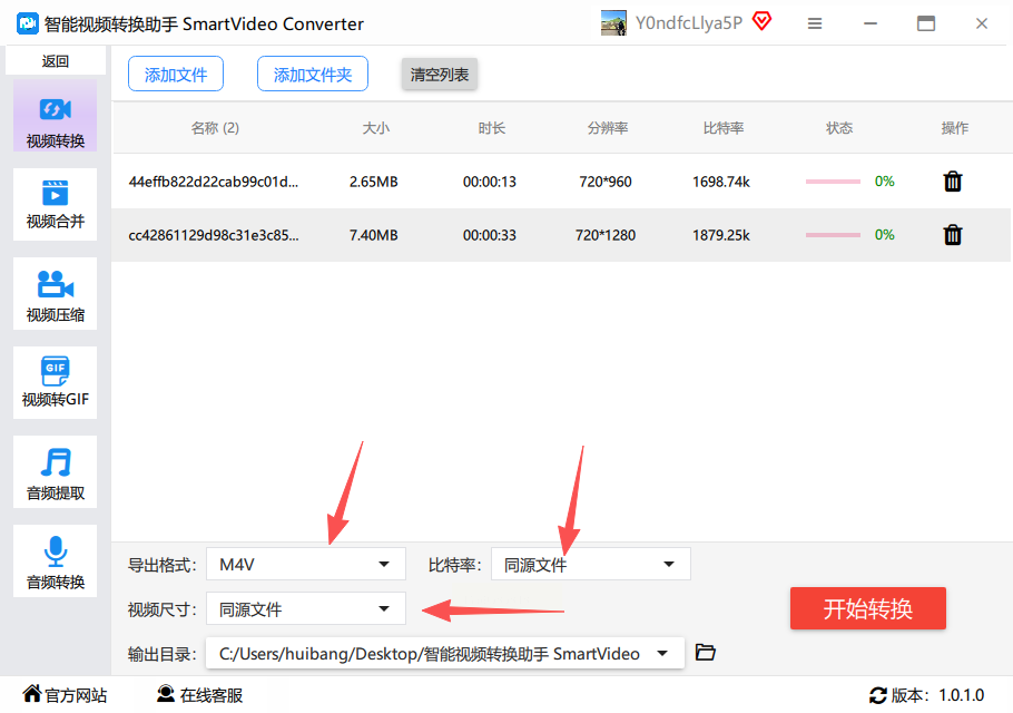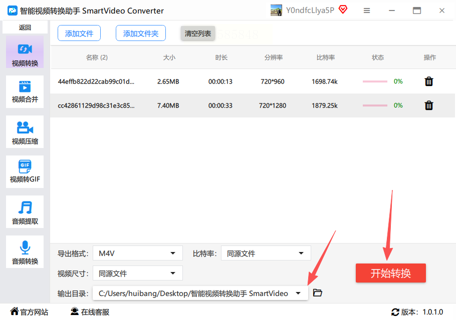 步骤六: 点击界面上的"开始转换"按钮,软件就会自动开始处理视频文件。转换进度可以在界面上实时查看,完成后会显示转换成功的提示。此时,你既能保留原始的MP4文件,又能得到新生成的M4V格式文件。