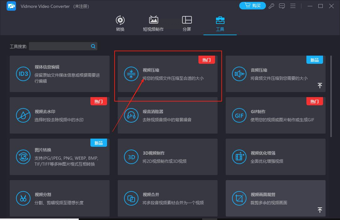 2. 选择功能:打开软件后,点击主界面的“视频压缩”选项。