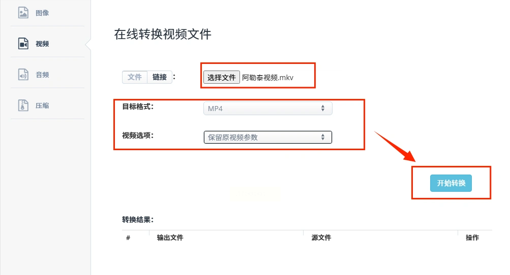 2. 点击“选择文件”按钮,找到本地要转换的MKV文件