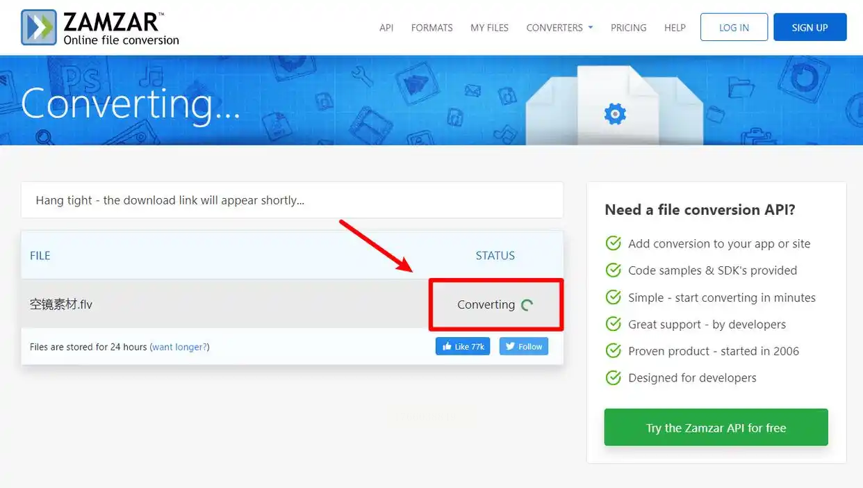 步骤一:访问Zamzar网站主页。