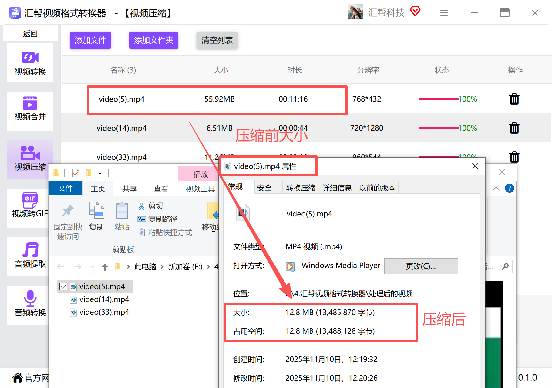压缩完成后,软件通常会提示“处理完成”或类似信息。这时你可以打开步骤6中设置的输出文件夹,查看压缩后的视频文件。右键点击文件选择“属性”或“显示简介”,可以查看文件的具体大小。如果压缩效果不理想,文件还是太大,可以回到软件中调整视频质量参数,重新压缩一次。