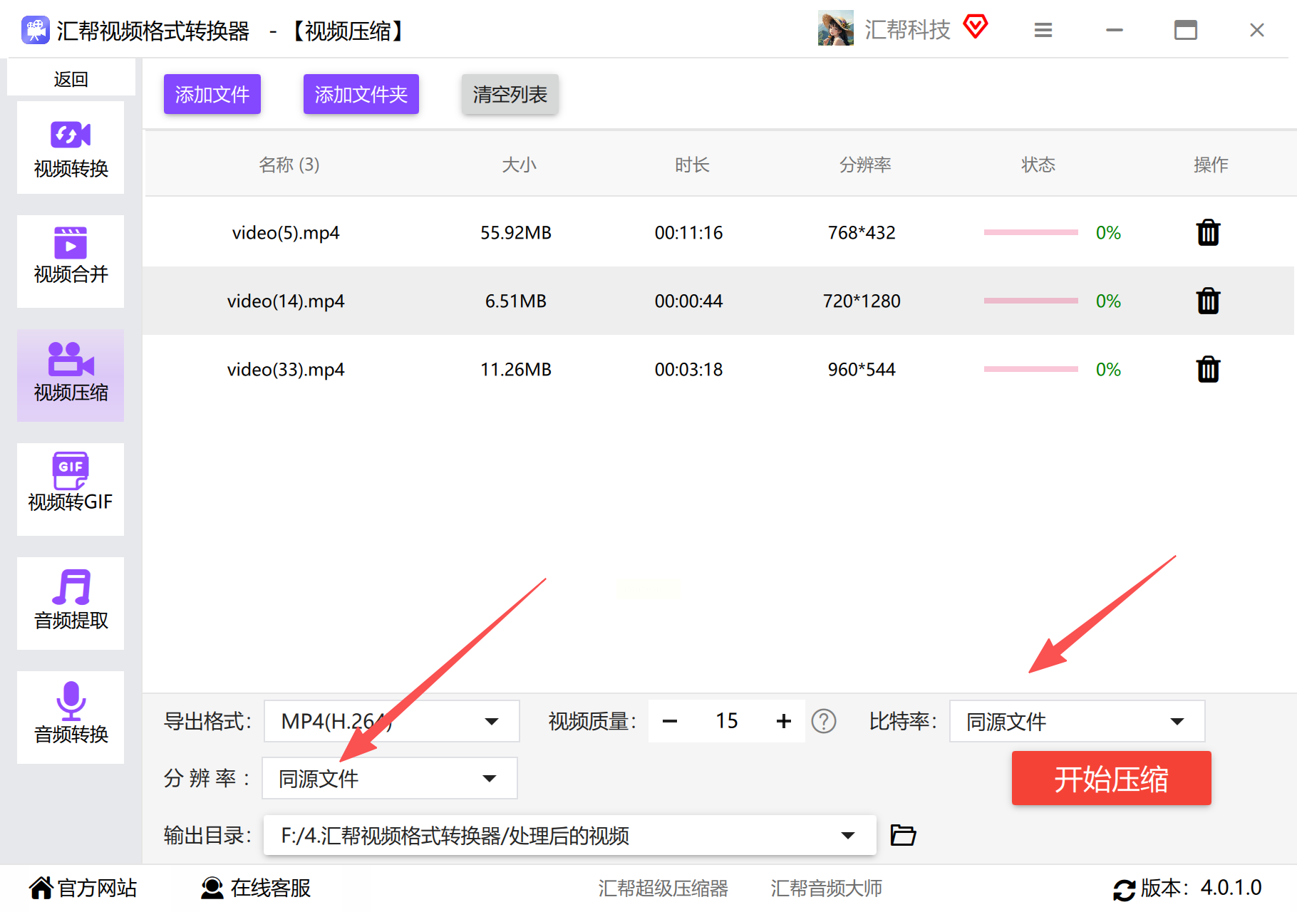 对于比特率和分辨率这两个参数,如果你不是特别了解它们对视频的影响,建议保持“原视频相同”或“自动”选项。这样软件会根据你的视频质量设置自动调整这些参数,在压缩文件大小的同时尽量保持视频观看体验。