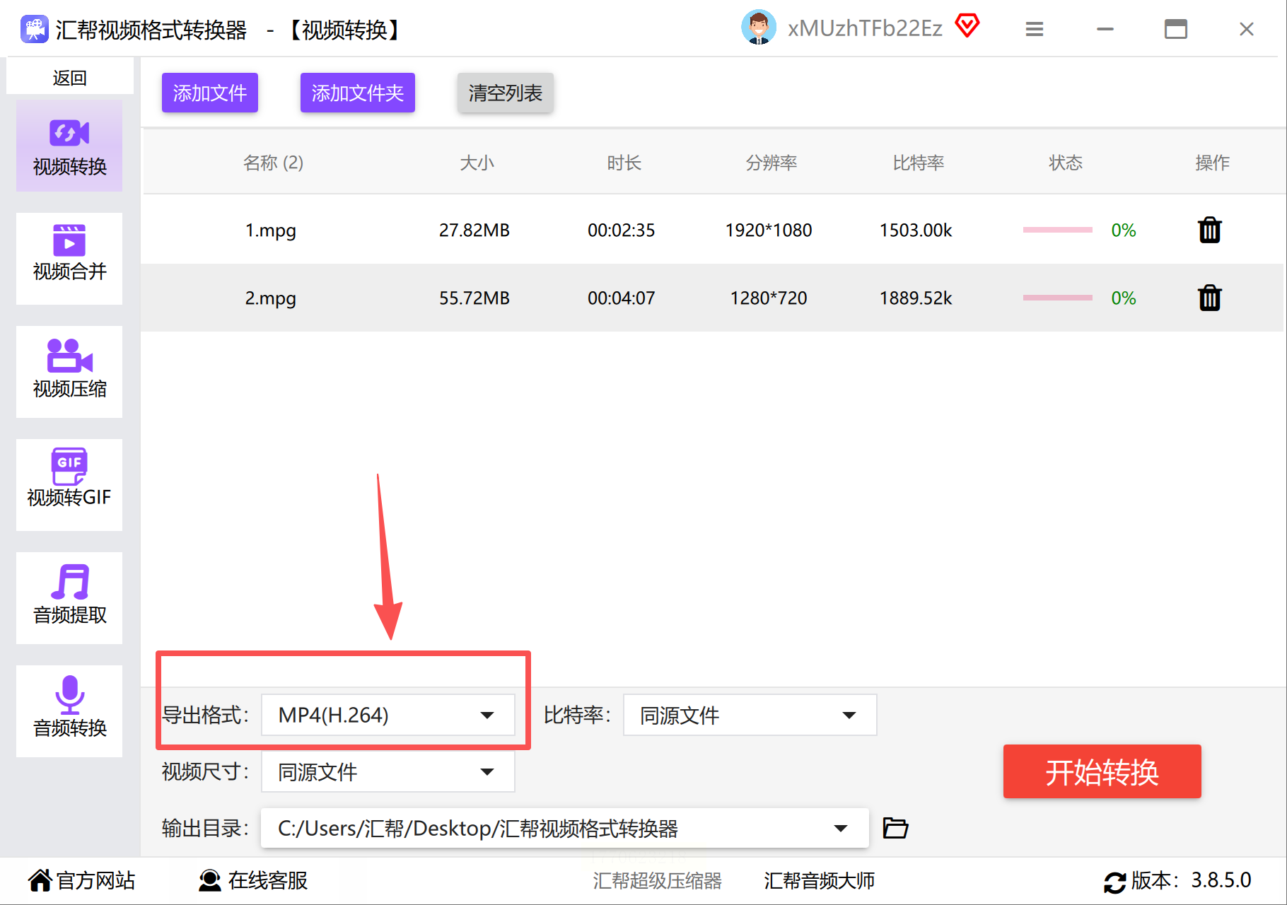 1. 汇帮视频格式转换器